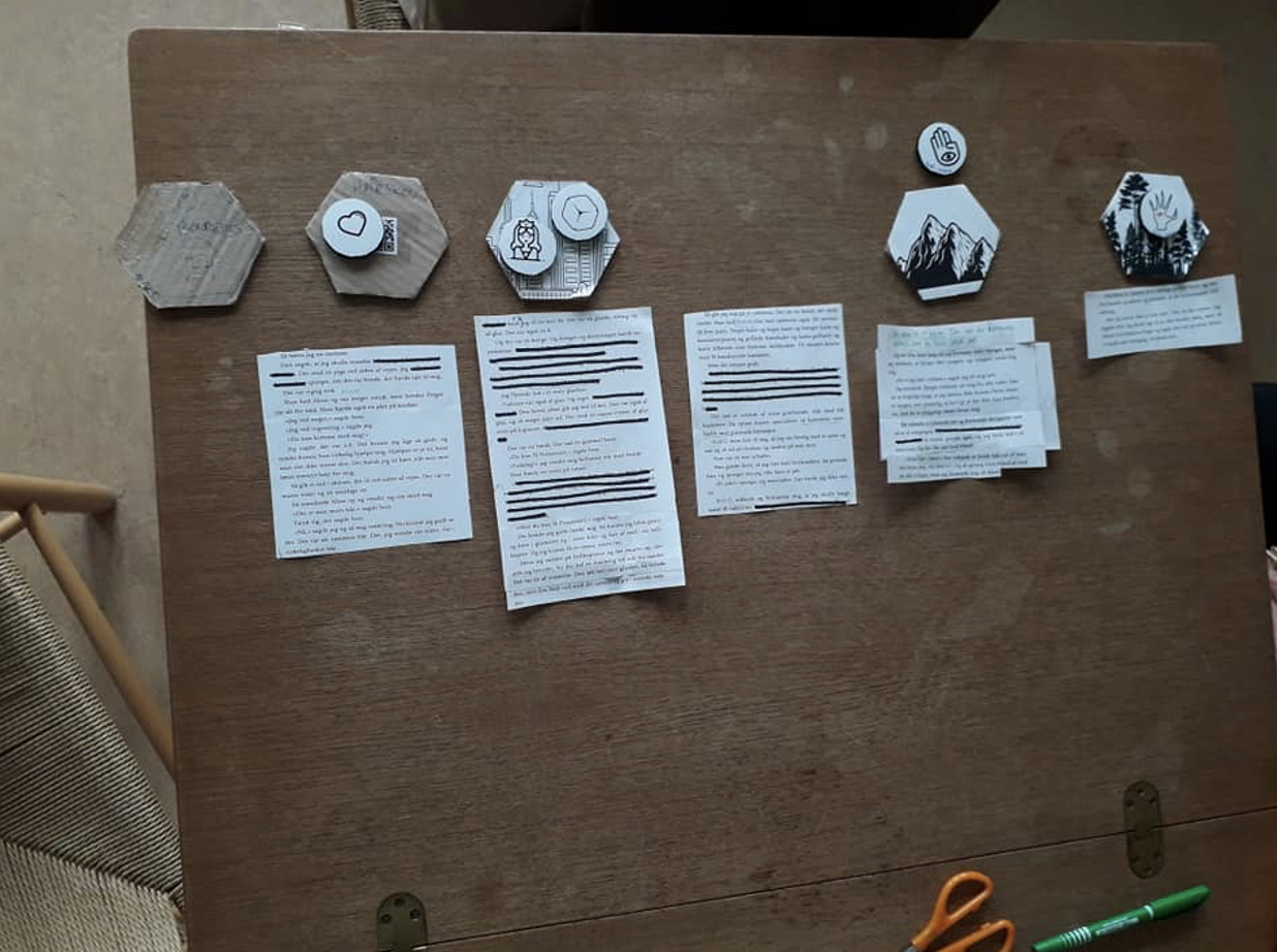After sketching the raw ideas of the game, my colleague (Lene Illum Skov) and I went through the first initiating design workshop. The aim of the workshop was to get closer to which elements we wanted to include in the game and how these would serve a specific purpose in regard to supporting the students’ creation of interactive stories.
