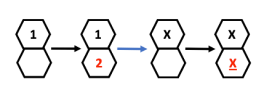 IF <a hexagon with area 2 contains the number 1 or 2>