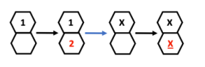 THEN <a specific action>.IF <a hexagon with area 2 contains the number 1 or 2>